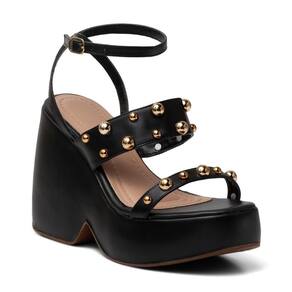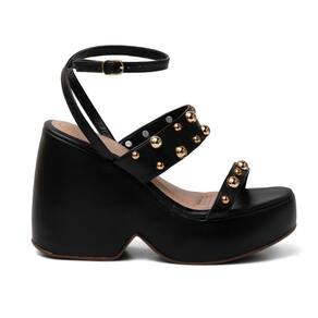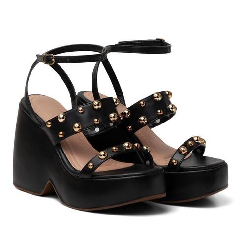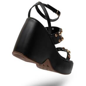 Sandália Feminina Anabela Salto Alto Tiras Fivela Estilo - 39 - Preto
