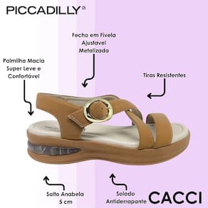 O fechamento em fivela ajustável metalizada facilita o calce e garante segurança, permitindo que você encontre a regulagem ideal para o seu conforto. O salto anabela de cinco centímetros oferece estabilidade e elevação na medida certa, trazendo equilíbrio entre elegância e bem-estar. Cada detalhe foi pensado para tornar o uso mais leve e prazeroso.