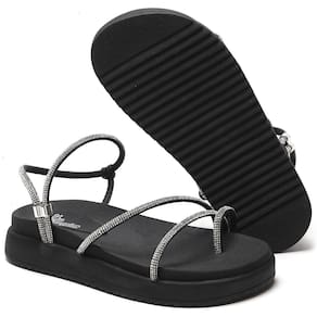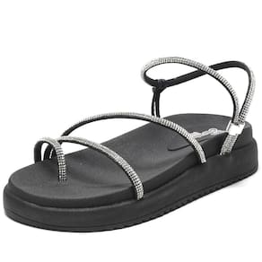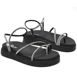 Sandália Feminina Brilho Strass Tendência Papete Anatômica - 35 - Preto