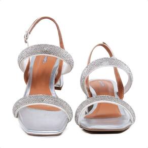 Sandália Feminina Casual Com Salto Acabamento Strass - 35 - Prata