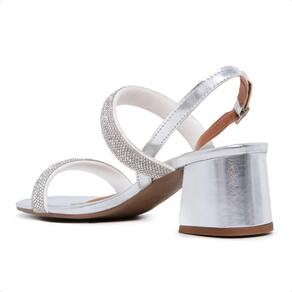 Sandália Feminina Casual Com Salto Acabamento Strass - 40 - Prata