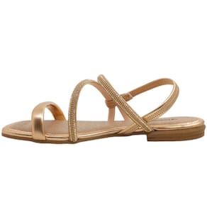A Sandália Mississipi Rasteira Metalizada da coleção Primavera/Verão é encantadora e une estilo e praticidade. Com bico de contorno quadrado, esta sandália é feita por tiras finas que adicionam delicadeza ao design. O calce fácil é garantido pelo formato sem fechamentos, sendo substituído por uma tira maleável que envolve o calcanhar. Já seu destaque encontra-se nas tiras repletas de brilhos sobre o pé, conferindo um toque sofisticado e único.