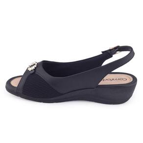 Sandália feminina da Comfortflex 23-96403 é um modelo flow, leve, macio e muito confortável. Seu cabedal é fabricado em materiais sintéticos respiráveis, aberta na ponta dos dedos e cacanhar, apresenta uma tira fechando o peito do pé com um aplique decorativo na parte frontal do cabedal, o fechamento do calcanhar é por tira com fivela. O calçado é todo forrado internamente, sua palmilha é fixa, almofadada e revestida em material têxtil com a logo da marca. Seu salto anabela é médio com 4cm de altura traseiro e 1cm de altura frontal, apresenta frisos para maior segurança. É um lindo modelo, ideal para o dia à dia ou passeios.