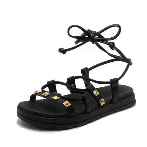 Destacando-se por sua amarração no tornozelo, esta sandália adiciona um toque de charme e feminilidade ao visual. As tiras finas e a delicada amarração criam um visual sofisticado e moderno, enquanto o fecho em fivela ajustável garante um ajuste seguro e confortável.