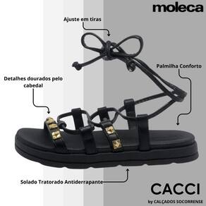 Construída com materiais de alta qualidade, a sandália Moleca possui palmilha macia que proporciona conforto durante todo o dia, e o solado antiderrapante oferece estabilidade e segurança ao caminhar. Seja para um passeio descontraído ou uma ocasião mais formal, esta sandália é a escolha ideal para quem busca estilo e conforto em um único calçado.