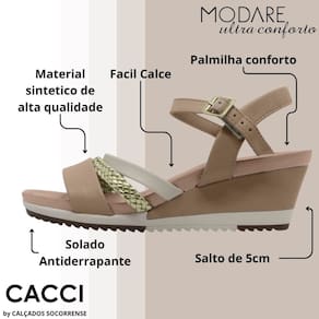Além de seu apelo estético, a sandália é projetada para proporcionar estabilidade ao caminhar, sendo uma excelente escolha para mulheres que valorizam o equilíbrio entre moda e bem-estar. Com a Sandália Feminina Conforto Anabela Média Modare 7123.147, cada passo é uma combinação de elegância e comodidade.