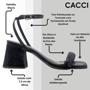 Descubra o equilíbrio perfeito entre estilo e conforto com nossa Sandália Cacci, uma combinação perfeita entre moda e conforto. Com um design moderno, ela oferece uma opção versátil para quem busca praticidade sem perder o charme.