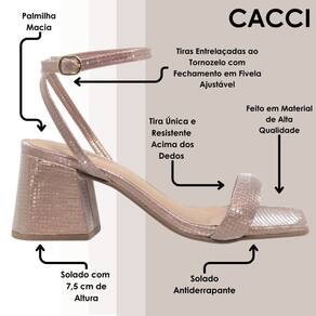 Por fim, o solado antiderrapante oferece o conforto necessário para o dia a dia junto ao seu salto bloco que garante mais confiança ao caminhar, sem abrir mão de um visual estiloso. É a escolha ideal para quem deseja uma sandália prática.