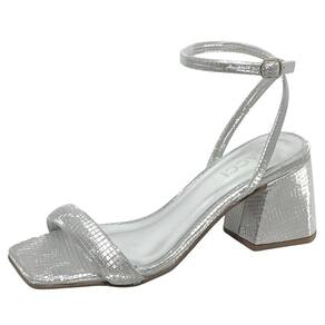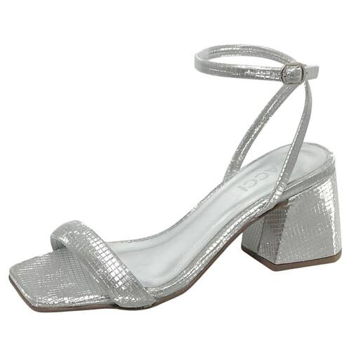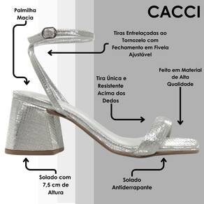 Sandália Feminina Conforto Brilho Salto Médio Moderna Cacci - 38 - Prata