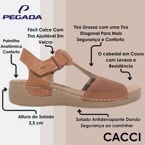 A Sandália Feminina Pegada em Couro combina conforto, qualidade e estilo. Os calçados Pegada, fabricados em couro, destacam-se pela alta qualidade do material, proporcionando maciez, resistência e durabilidade. O solado leve e flexível, com um saltinho de 3,5 cm, garante conforto ao caminhar, tornando-a uma excelente escolha para uso diário. A palmilha macia, que se molda ao formato dos pés, contribui para uma experiência de uso agradável, proporcionando conforto ao longo do dia. O modelo, além de funcional, apresenta uma tira autocolante e elástico na parte interna, facilitando o ajuste aos pés e proporcionando praticidade no calce.