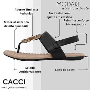 O design moderno apresenta tiras delicadamente entrelaçadas, proporcionando um visual sofisticado e versátil que se adapta a diversas ocasiões. A palmilha anatômica e macia oferece suporte aos pés, enquanto a tecnologia Modare traz a sensação de leveza e flexibilidade a cada passo.