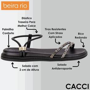 Sandalia Feminina Conforto Strass Beira Rio 8488.113 - Preto - 40