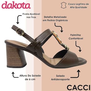 Descubra o equilíbrio perfeito entre estilo e conforto com este modelo da Dakota, pensado para mulheres que não abrem mão de praticidade sem perder a elegância. O design moderno e sofisticado garante que cada passo seja feito com segurança e confiança, tornando-o ideal para o dia a dia ou para ocasiões especiais. Cada detalhe foi cuidadosamente elaborado para transmitir requinte e personalidade, destacando-se pelo acabamento impecável e pelo toque diferenciado das pedras orgânicas aplicadas. A palmilha confortável proporciona um caminhar leve e agradável, enquanto o solado antiderrapante garante estabilidade em diferentes superfícies, oferecendo segurança e bem-estar a cada movimento. A altura do solado de 6 cm confere o equilíbrio ideal entre elevação e conforto, permitindo maior liberdade de movimentos sem comprometer o estilo. O cabedal em couro autêntico de alta qualidade assegura durabilidade e resistência, aliado a um visual sofisticado que se adapta a diversos looks. As tiras ajustáveis com fivela proporcionam um encaixe personalizado, garantindo que o calçado se ajuste perfeitamente ao formato do pé, oferecendo conforto prolongado mesmo em longos períodos de uso. O detalhe metalizado das pedras orgânicas adiciona um toque de luxo discreto, elevando o design e tornando o modelo uma peça versátil, que combina com diferentes ocasiões. Ideal para quem busca praticidade sem abrir mão da sofisticação, este calçado Dakota é a escolha certa para quem valoriza estilo, conforto e qualidade em cada detalhe.