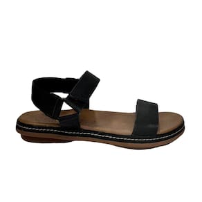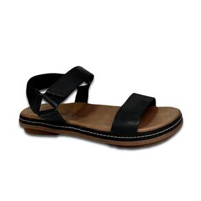 Sandália Feminina Couro Tira Aderente Salto Baixo Casual - 38 - Preto