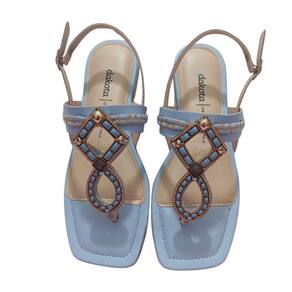 sandalia feminina dakota rasteira casual com fivela aplique - 35 - Azul Petróleo