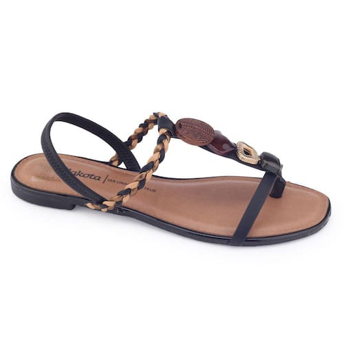 Sandália feminina Dakota Y6912 é moderna e confortável, fabricada em material sintético, apresenta toda a qualidade da marca. Esta sandália é rasteira e destaca-se em looks para passeios e também tem conforto para o dia a dia. Seu cabedal tem como destaque tiras em trança no peito do pé decoradas pedraria em tons terrosos em formatos diversos. O calcanhar neste modelo é aberto e o calçe é fácil, pois basta encaixar o pé, sua tira do tornozelo é elástica permitindo inclusive que a sandália seja usada como um tamanco, a palmilha fixa é almofadada, com a Logo da marca. O salto rasteiro possui 1cm de altura revestido em verniz, solado com frisos para maior segurança.