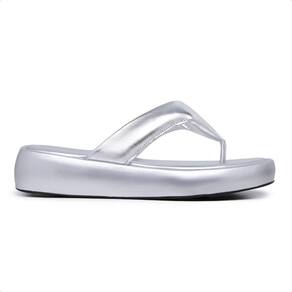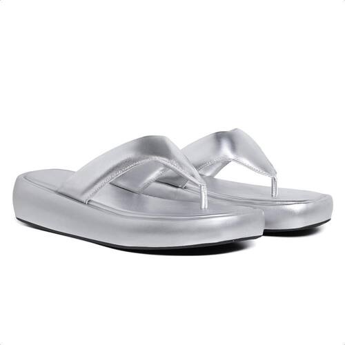 Sandália Feminina de dedo Metalizada Moderna Estilo Flat - 38 - Cinza