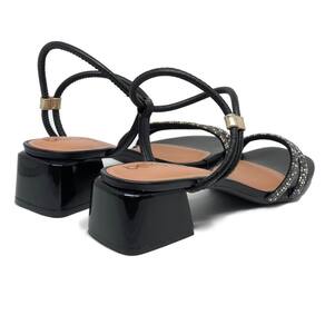 O modelo apresenta um cabedal cuidadosamente elaborado, garantindo um ajuste preciso e confortável aos pés. A atenção aos detalhes é evidente no acabamento impecável, e o toque metalizado adiciona um charme extra, conferindo um brilho sutil à peça. Essa sandália é perfeita para diversas ocasiões, desde compromissos casuais até eventos mais formais.
