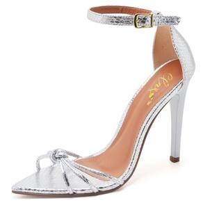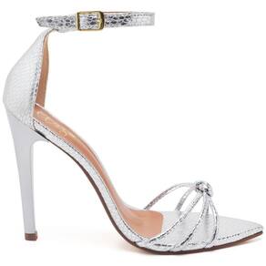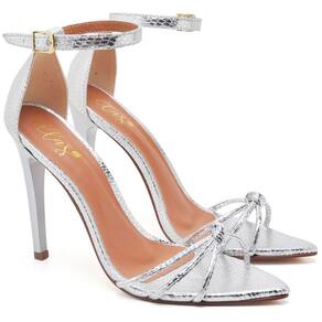 Sandália Feminina Ellas Online Salto Alto Bico Folha Cristal Prata - 38 - Prata