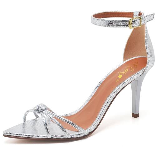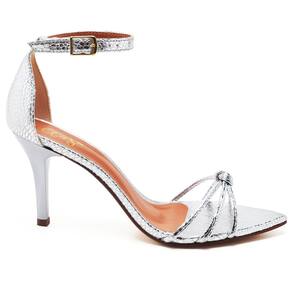 Sandália Feminina Ellas Online Salto Médio Bico Folha Cristal Prata - 34 - Prata