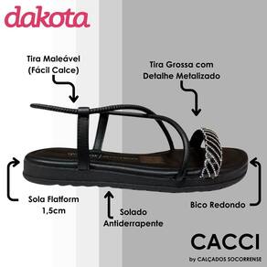 Feita com material sintético de alta qualidade, esta sandália é leve, com um peso de apenas 0,570 kg, garantindo que você possa usá-la durante todo o dia sem se sentir cansada. Versátil e prática, essa sandália pode ser facilmente combinada com diferentes looks, desde roupas casuais até produções mais sofisticadas. Com a sandália Dakota, você estará sempre elegante e confortável, pronta para aproveitar cada momento com estilo.