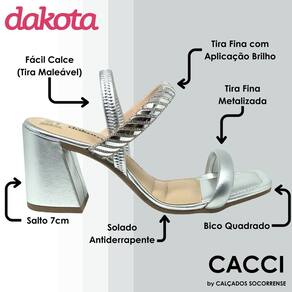 A Sandália Dakota Salto Médio Feminina Brilho Y6906 é um elegante exemplo de estilo e conforto. Confeccionada em material sintético de alta qualidade, o cabedal apresenta uma biqueira quadrada que confere modernidade ao modelo. Composto por duas tiras, sendo uma delas adornada com uma aplicação de brilho em strass, o design proporciona um toque sofisticado ao calçado. A presença de uma tira elástica traseira assegura uma fixação firme aos pés. A palmilha espumada oferece conforto adicional, enquanto o salto médio de aproximadamente 7cm proporciona elegância e equilíbrio. O solado em TR garante durabilidade e estabilidade ao caminhar.