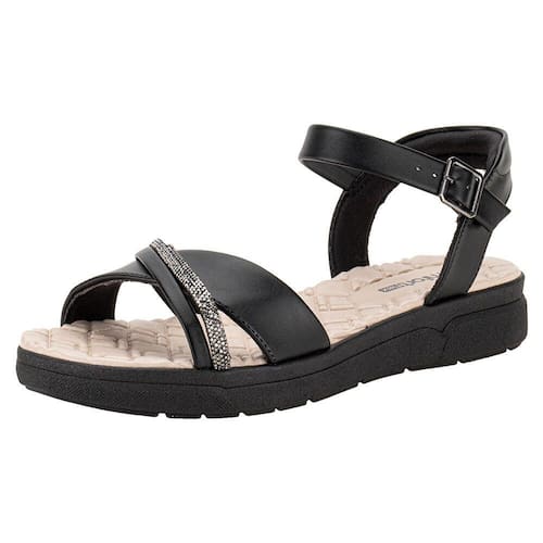 A Sandália Feminina FlatComfortflex é a perfeita fusão de elegância e conforto. Confeccionada em Napa Plus e Strass. Sua palmilha em EVA e o solado em borracha medindo três centímetros, enquanto o acabamento impecável adiciona um toque de requinte ao visual.