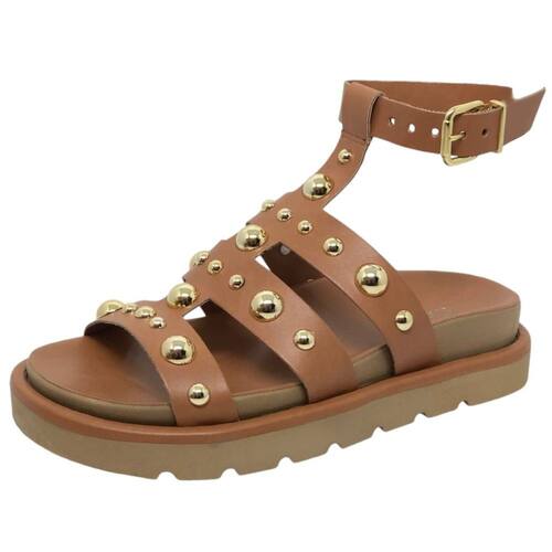 Sandália Feminina Flat Conforto Tiras Pins Dourado Cacci - Marrom - 36