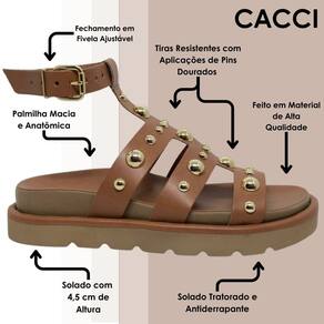Descubra o equilíbrio perfeito entre estilo e conforto com nossa Sandália Cacci, uma combinação perfeita entre moda e conforto. Com um design moderno, ela oferece uma opção versátil para quem busca praticidade sem perder o charme.