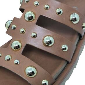 Suas tiras resistentes junto a pins dourados aplicados incrivelmente exuberante que destaca a silhueta dos pés de forma elegante. Essa sandália foi criado para proporcionar um encaixe perfeito e seguro em qualquer momento. São esses pequenos detalhes que fazem toda a diferença, transformando seu look em algo verdadeiramente especial.