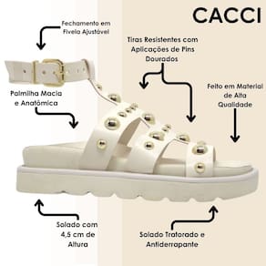 Descubra o equilíbrio perfeito entre estilo e conforto com nossa Sandália Cacci, uma combinação perfeita entre moda e conforto. Com um design moderno, ela oferece uma opção versátil para quem busca praticidade sem perder o charme.