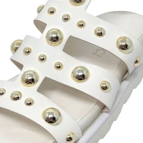 Suas tiras resistentes junto a pins dourados aplicados incrivelmente exuberante que destaca a silhueta dos pés de forma elegante. Essa sandália foi criado para proporcionar um encaixe perfeito e seguro em qualquer momento. São esses pequenos detalhes que fazem toda a diferença, transformando seu look em algo verdadeiramente especial.