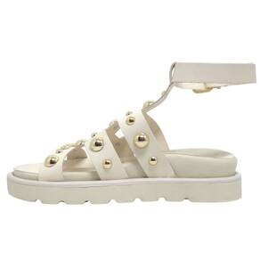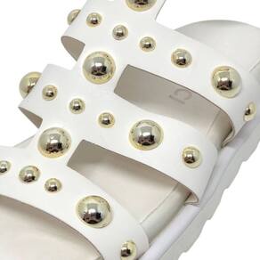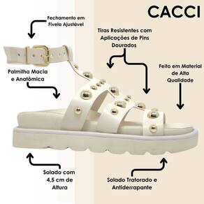 Sandália Feminina Flat Conforto Tiras Pins Dourado Cacci - 37 - Branco