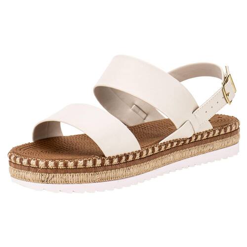 Sandália Feminina Flat Moleca 5447518 de salto baixo com solado de 3 cm. Feita em Napa Turim, com palmilha em EVA e sola em borracha. Acabamento colado/costurado e fechamento por fivela para um ajuste seguro e confortável. Ideal para o dia a dia com elegância.