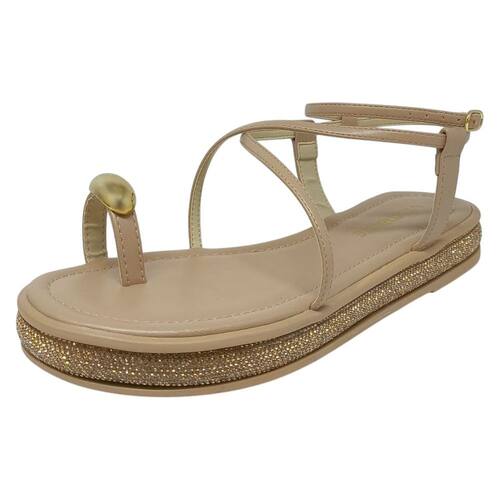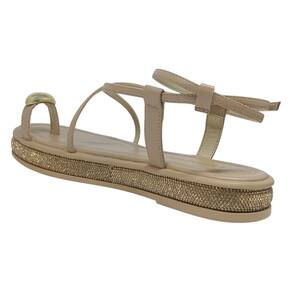 Sandália Feminina Flatform Brilho Strass Estilo Via Marte - Bege - 34