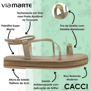 Com essa sandália, você estará pronta para arrasar em qualquer ocasião, trazendo estilo e brilho para o seu dia a dia. Experimente o charme único da Via Marte e sinta-se incrível!