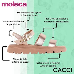 Com a Sandália Flatform Conforto Metalizada da Moleca, seus pés ganham um toque de luxo, e seu visual, um charme especial. Perfeita para quem quer brilhar sem abrir mão do conforto, ela vai ser sua companheira ideal para qualquer ocasião!