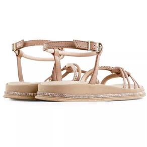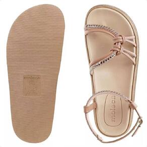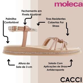 A Sandália Feminina Moleca é uma peça versátil e confortável, com tiras em strass, conferindo um toque de glamour ao design casual