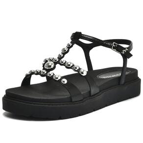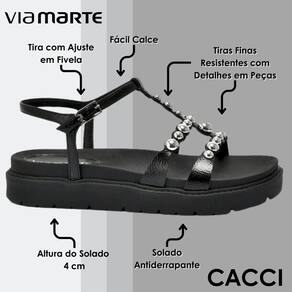 Sandália Feminina Flatform Pedraria Moderna ConfortoVia Marte - 36 - Preto