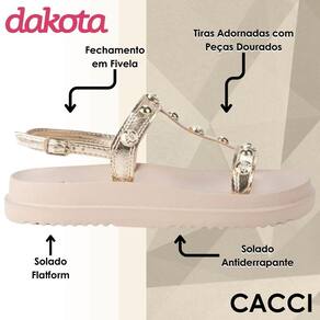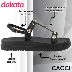 Sandália Feminina Flatform Pratica com Peças Douradas Dakota - Preto - 38