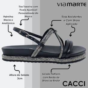 A Sandália Via Marte une elegância e conforto em um design sofisticado. Com tiras com brilho no peito do pé e detalhes em strass, oferece um toque de glamour. O brilho no solado adiciona um efeito visual moderno e atraente. O fechamento prático ajustável proporciona um ajuste seguro, enquanto a construção macia garante conforto duradouro. Ideal para quem busca uma rasteira papete que combina estilo e bem-estar.