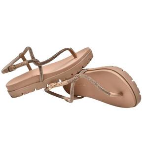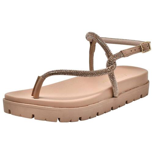 Sandália Feminina Flatform Tiras Strass Via Marte - 36 - Bege