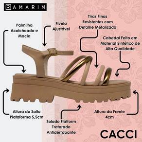 Cabedal em material sintético de alta qualidade: Com tiras finas, resistentes e macias, o cabedal combina elegância e durabilidade, mantendo o visual impecável e o toque confortável.