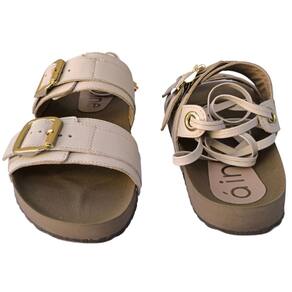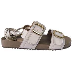 Sandália Feminina Gladiadora Tira de Couro Ajustável Festas - 39 - Bege