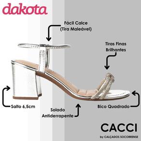 A Sandália Dakota de Salto Bloco Metalizada com Brilhos é uma escolha elegante para diversas ocasiões. Com um salto bloco alto de 6.50cm, essa sandália oferece um toque de sofisticação e feminilidade ao seu visual. As tiras finas com brilhos na parte frontal proporcionam um charme especial, garantindo glamour às suas produções e tornando-a perfeita para momentos especiais.
