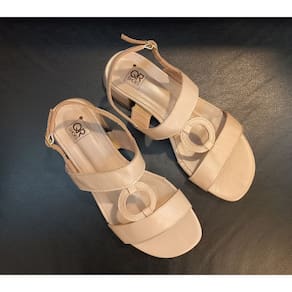 Sandália feminina nude bege confeccionada em couro, com salto grosso de 3 cm. Seu cabedal é composto por duas tiras com fivela. Solado em borracha TR antiderrapante para maior segurança em diferentes tipos de solo.