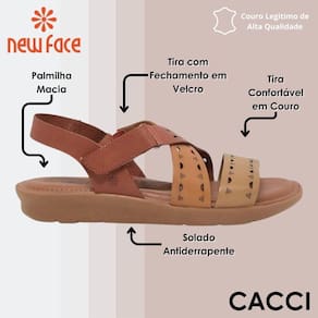 A Sandália Feminina New Face é a escolha perfeita para quem deseja unir sofisticação, conforto e praticidade em um único modelo. Com tiras elegantes e acabamento impecável em material sintético de alta qualidade, essa sandália proporciona um ajuste confortável e firme aos pés, permitindo liberdade de movimentos sem abrir a mão da segurança.