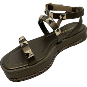 Sandália Feminina Papete Casual Dia a Dia Passeio FlatForm Apliques Metalizados Conforto Via Marte 118-001