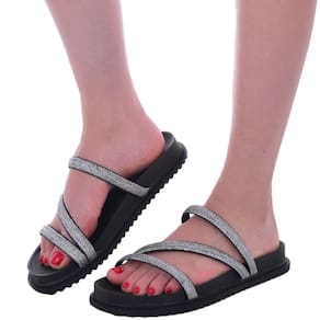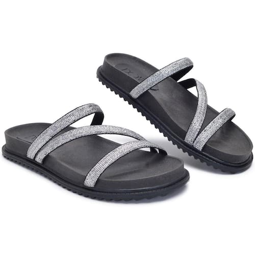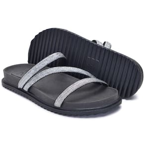 Sandália Feminina com Brilho é Sinônimo de conforto e praticidade, as rasteiras são calçados indispensáveis no armário de qualquer mulher moderna. São confortáveis e versáteis, perfeitas para os dias mais quentes. Sandália elaborada em material resistente, o detalhe em brilho adiciona um toque de elegância ao calçado, com design minimalista e clean permite fazer diversas combinações além da delicadeza, cai muito bem com looks casuais e descontraídos, ótima opção com saia midi ou vestido leve, proporcionando um visual fresco e despojado. Ficha técnica Material: Tiras em Tecido. Solado: Micro expandido super leve, antiderrapante. Altura do solado: 3,5 centímetros Tamanho 34=23cm 35=24cm 36=24,5 37=25,5 38=26 39=26,5 40=27cm.