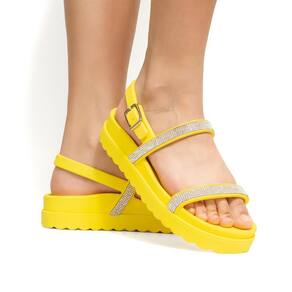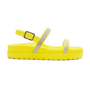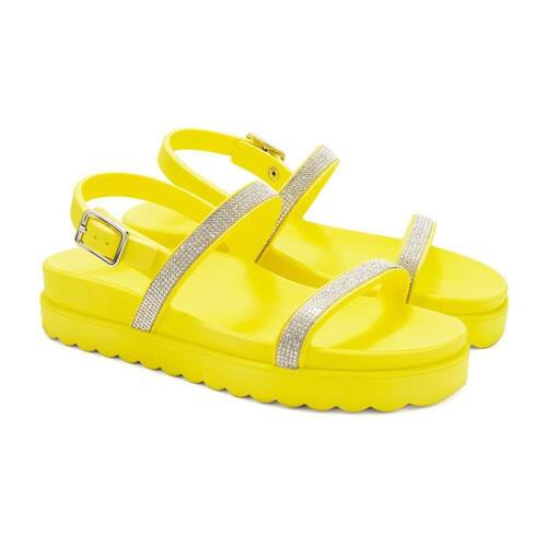 Sandália Feminina Papete Confortável Fivela Strass Tira - 39 - Amarelo